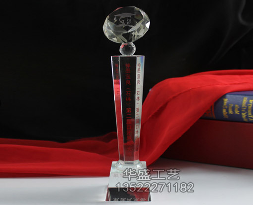 产品描述:钻石头多边形柱水晶奖杯