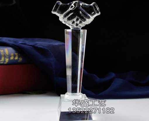 产品名称:握手多边形柱子水晶奖杯